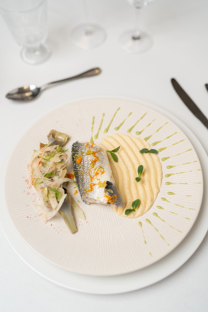 Chocolat blond & fleurs du potager Moelleux chocolat blond, ganache montée jasmin, pétales & herbes du jardin, croustillant sarrasin, gel fleur de sureau.