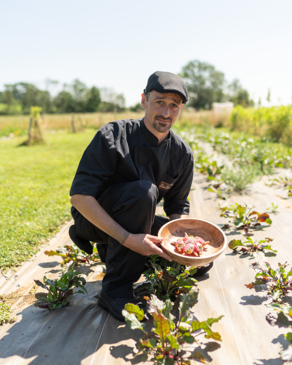 Cette approche se prolonge dans notre potager de 5 000 m², cultivé en permaculture et riche d’une quarantaine de variétés. C’est un lieu d’observation, de transmission et d’inspiration, où l’on apprend à cuisiner au plus près de la terre et de son rythme.
